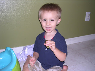 Today is cousin Ava's 1st birthday! We wish her a very happy birthday, and wish we could be there to celebrate with her at her party. Lately, Keegan has been eatinf everything in sight...and we have pictures to document it. See below.
